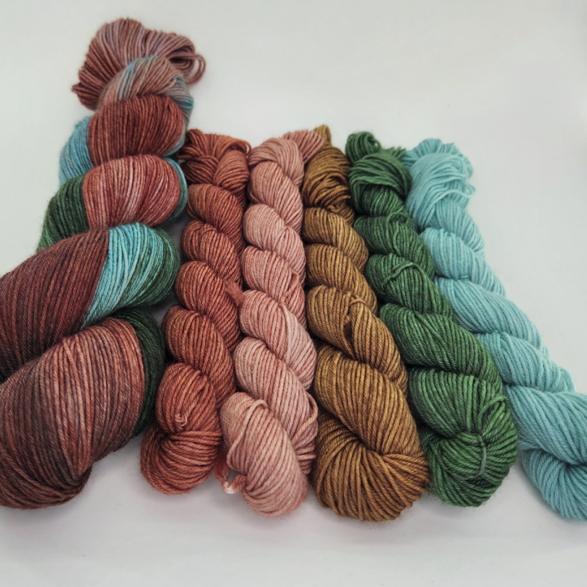 The Oregon Coast, a colorful palette pulled from nature and colors found in the land, water, and sky. This colorway is inspired by the geological wonder the Devils Punchbowl, with semi-solid, variegated, and mini skein sets of coordinating colors.